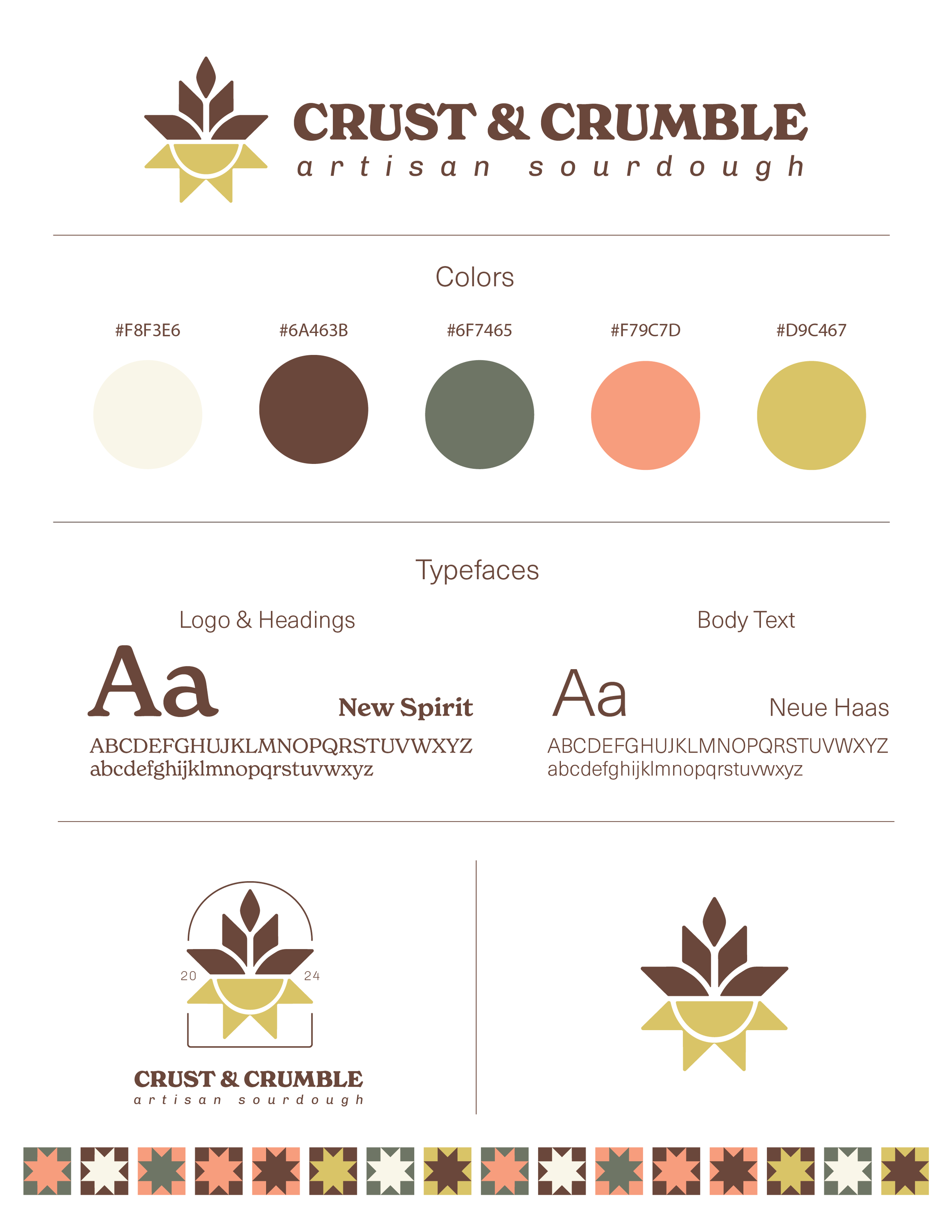Crust & Crumble is a fictional bakery specializing in sourdough baked goods. The old logo was created by me as a class project. This year I updated the Brand Identity to give it new life and to more accurately represent the brand’s desired image. Key brand words include: Wheat, Sun, Light, Warmth, Organic, & Airy.